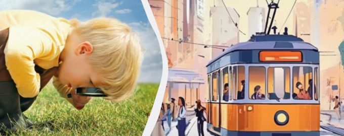 בתמונה נראה רחוב סואן שלאורכו הולכים אנשים וחשמלית רגילה נוסעת. עליך להגדיר את הטיימר לחמש שניות ולמצוא את הפגם לפני שיגמר הזמן. האם אתה מוכן?
