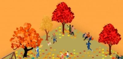 התמונה מציגה מגרש משחקים בסתיו שבו צועדים אנשים עם ילדים. כל אחד עסוק בעסק שלו, אבל ליד חלקן נמצאות הדלעות שאנחנו מחפשים.